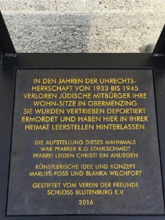 Die Deckplatte des unten befindlichen Sockels besteht aus einer beschrifteten Gedenktafel.